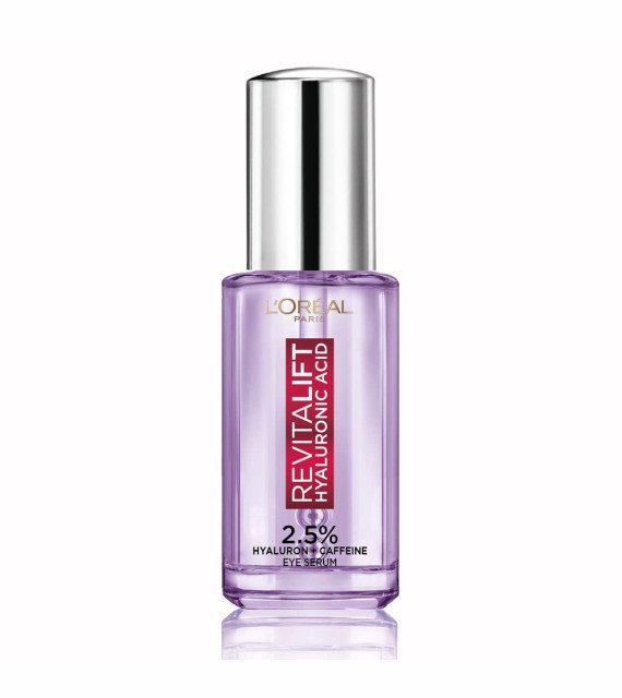 Get brighter, younger-looking eyes with the 1.5% hyaluronic acid and 1% caffeine eye serum by L'Oreal Paris. Reduce crow's feet, dark circles and puffiness!
